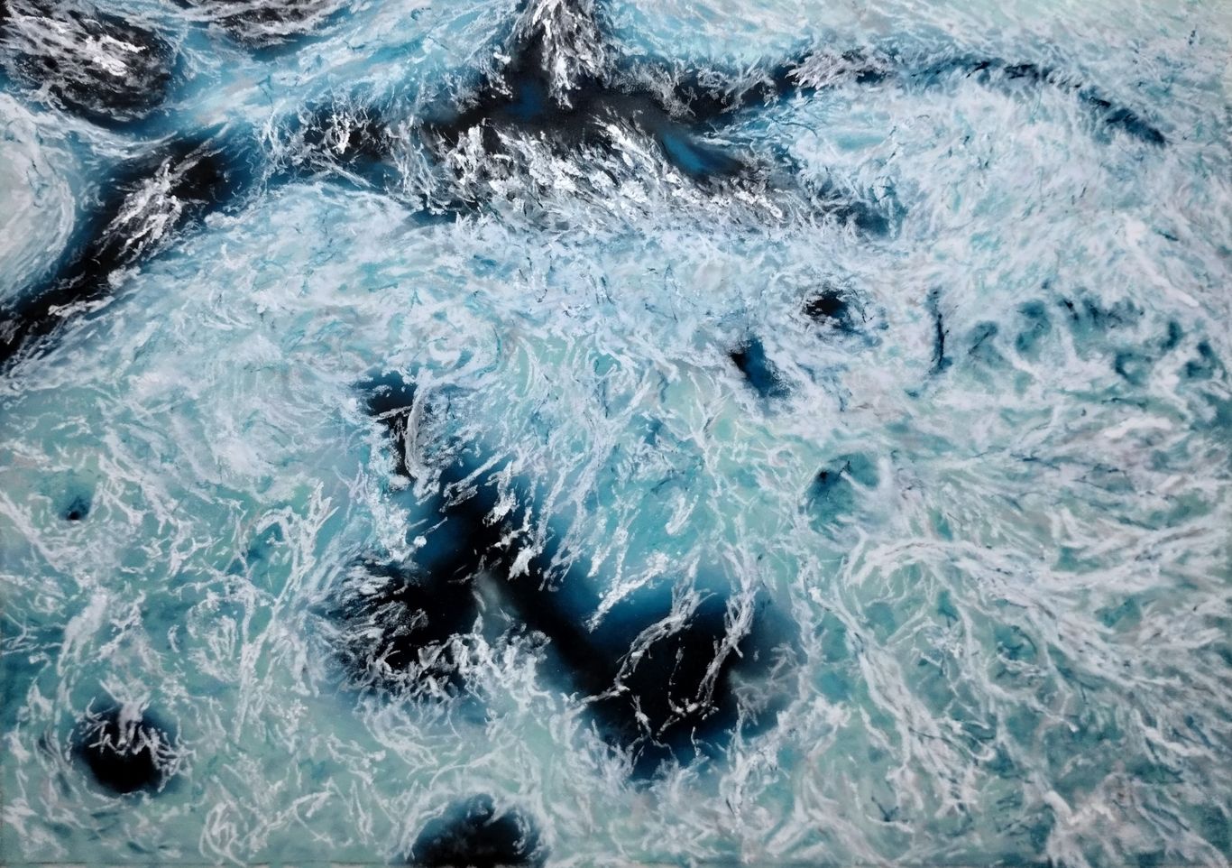 The endless motion of the seas provide an ever changing subject. The vivid palette of blues and greys are punctuated by the deep dark depths of a hidden unknown.